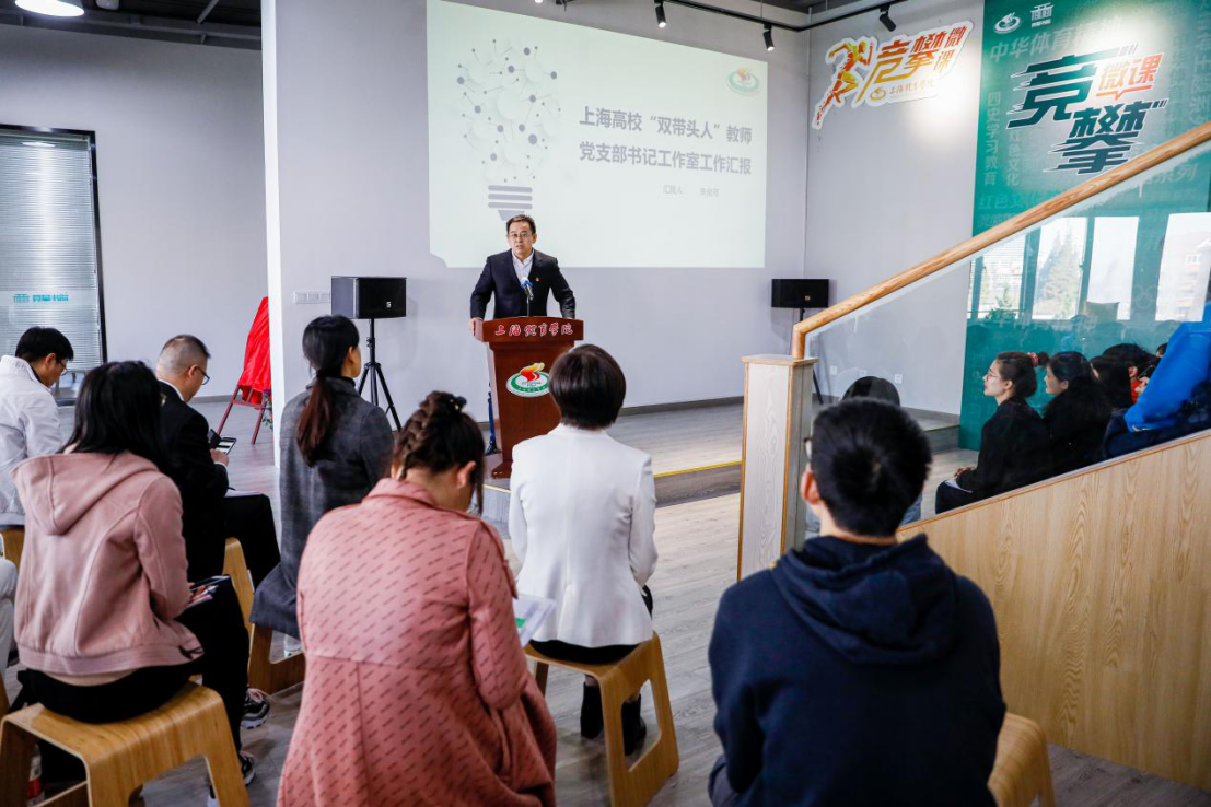 主题党日活动中还设有微党课环节。教工第二党支部书记、上海市高校“双带头人”工作室负责人朱俊河老师以“党建引领融入课程思政的思考”为题讲述了自己对党建引领融入课程思政的思考。他结合工作实践提出,党建工作是学院发展的航标,必须坚定不移推动党建对教学、科研和学科发展的引领作用。同时,教师和学生党员必须牢记使命担当责任,在蓄势待发的新文科建设中奋力作为,积极冲击高精尖,为学校的“双一流”建设作出应有的贡献。而来自学生第三党支部的刘海燕和徐一航,以及学生第一党支部的赵晨霖、高嘉宇,以“红色基因、竞攀传承”等为题,分享了在学院党委开展的“红色寻访”主题实践活动中的收获感悟,号召传艺学子以历史为鉴,以英烈为范,习得本领、报效祖国。