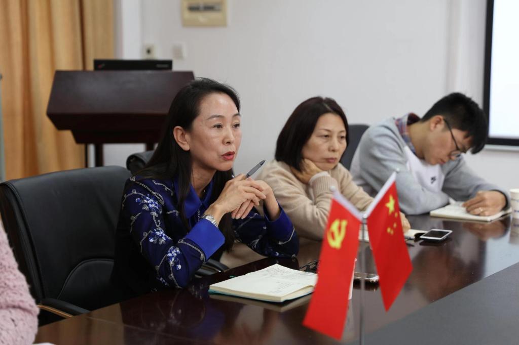 高艳丽就传艺学院深入开展“不忘初心、牢记使命”主题教育的推进情况、各党支部开展主题教育的特色亮点工作,以及调研梳理的问题以及整改情况进行了全面汇报。杜友君加强课程思政教学内涵建设、推动组团式科研创新工作、校企合作探索转型发展等方面对学院近期工作进行了重点汇报。韩春英则汇报了传艺学院通过技能大赛、学术研讨、精品节目编创来创新课程思政和人才培养模式的实施路径。随后,各支部书记、教师代表围绕主题教育的感悟,并结合教学和立德树人工作进行了分享,并就专业建设和学校发展提出了有益的建议。