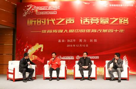 12月10日上午10点,由上海体育学院、解放日报社、上海市体育局主办的纪念改革开放四十周年“体育改革路体育四十人”主题系列活动暨体院大讲坛第499讲“听时代之声 话竞攀之路”体育传媒人眼中的体育改革四十年主题论坛在图文信息楼报告厅举行。中央电视台著名主持人、评论员孙正平、上海五星体育周力工作室制作人周力、上海五星体育著名主持人、评论员刘阳受邀与师生做主题交流。上海体育学院党委书记李崟出席本次活动,宣传部部长匡淑平,体育新闻传播与外语学院院长杜友君,体育新闻传播与外语学院党总支书记张盛参加本次活动。本次活动由新外学院播音主持专业教师朱俊河主持。