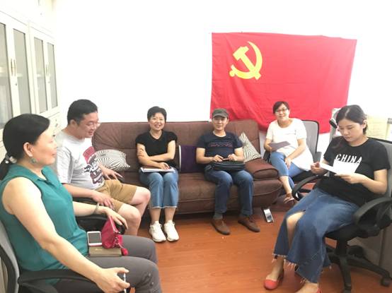 教工第三支部和第四支部也以各自开展了主题党日活动,大家纷纷表示郑德荣、钟扬等优秀共产党员的先进事迹是党员教育的生动教材,对党员和教育工作者具有强大的示范意义,每个人都要结合本职岗位进行传承与践行。7月16日下午,体育新闻传播与外语学院教工第四党支部以前期学习电影表演艺术家牛犇入党事迹,重温2014年《习近平总书记在文艺工作座谈会上的讲话》精神为基础,召开专题组织生活会。党委书记李崟同志作为联系新外学院及其教工第四党支部的党委领导参加组织生活。大家表示,一批批先进典型为教育工作者为大家“举精神之旗、发时代之声、育国之栋梁”作出了榜样。司长强以典出王国维诗句的“闳约深美”四字表达了自己对艺术人生和艺术教育的认识。林毅指出,新时代艺术人才培养要更加注重喉舌意识和创新意识,党员教师要立足本职岗位提升先锋模范的服务力,变输血式贡献为造血式贡献。邵绿表示,教育学生讲好中国故事需要引导学生在历史文化的瑰宝中品读中国故事,汲取修身做人的精神养分。邓佳煜结合自己的教书育人工作谈了对先做人后做事的体会,表示将把注重细节的理念贯彻到日常的教学工作中。新外学院院长杜友君以推动中国影视走出去为例指出,无论时代和受众如何变化,都要在人才培养中把握准绳,坚守价值规律,从理论高度去指引艺术和新闻人才的培养。