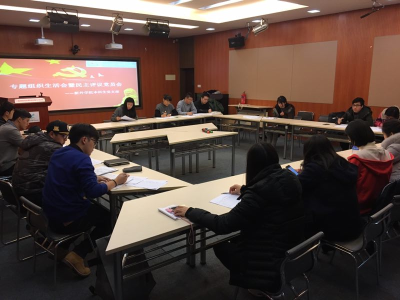 1月11号,为深入学习贯彻党的十八届六中全会精神,按照《市教卫工作党委关于在“两学一做”学习教育中召开专题组织生活会和开展民主评议党员的通知》要求和学校党委工作部署要求,新外学院本科生党支部召开专题民主生活会暨民主评议党员活动,新外学院党总支副书记高艳丽,本科生党支部班子成员以及学生党员共同出席了会议,会议由本科生党支部书记原溶主持。