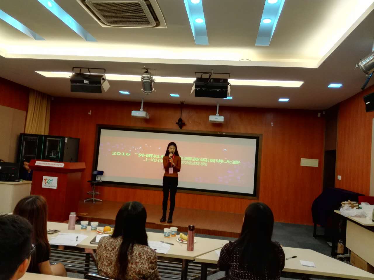 为提高上海体育学院大学生的英语应用能力,展现体院大学生的综合素质与精神风貌,新外学院新闻学术英语教学团队于近日成功举办了2016“外研社杯”全国英语演讲大赛上海体育学院选拔赛,来自外语、新闻、运科和管理等多个专业的近90名本科生和研究生参加了比赛。经过初选,有10位选手成功杀入了在老教学楼223进行的决赛。