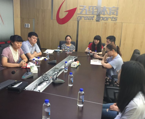 实习走访人员一行来到位于上海广电大厦的五星体育,与工作人员和实习学生进行座谈交流。作为传统体育媒体的代表,五星体育希望吸纳体育知识全面,基本功扎实的人才,同时也表达了对双语解说、双语主持人才的渴求,希望在里约奥运会举办期间有更多的学生加入到五星奥运报道的各类岗位中。三位老师认真聆听实习生的实习感悟,并与实习单位现场沟通,帮助解决实习生在实践中产生的困惑与问题。高艳丽关切地询问了实习生的实习工作和生活情况,提醒他们在实习过程虚心求教,和指导老师保持紧密联系和交流。她感谢实习单位为学生创造了良好的学习和实践环境,表示学院将高度重视各家单位反馈的信息和提出的建议。