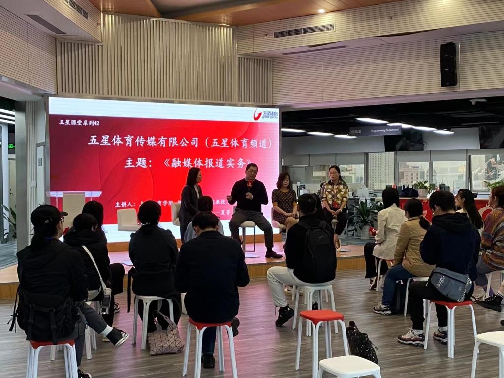 4月6日下午,我校研究生课程《媒介融合与融合新闻研究》将课堂“迁移”至SMG广电大厦,师生团队围绕融媒体报道实务开展了研学活动,并与五星体育资深媒体人周力、夏菁、马晋翊开展了深度交流。