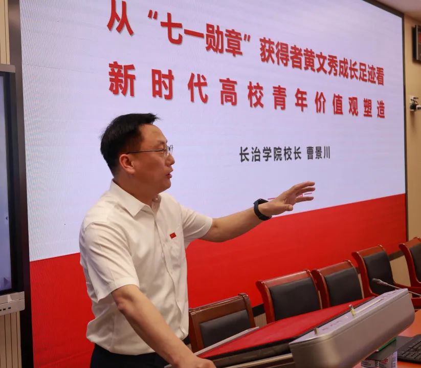 2023年5月26日下午15:00,长治学院党委副书记、院长曹景川教授为新传学院党员、入党积极分子们带来了一场主题为“从‘七一勋章’获得者黄文秀成长足迹,看新时代高校青年价值观塑造”的讲座。曹教授从黄文秀的价值观形成、什么样的人生有价值、培养黄文秀式的优秀青年和争做堪当重任的新时代体育人四个方面做了精彩阐述。