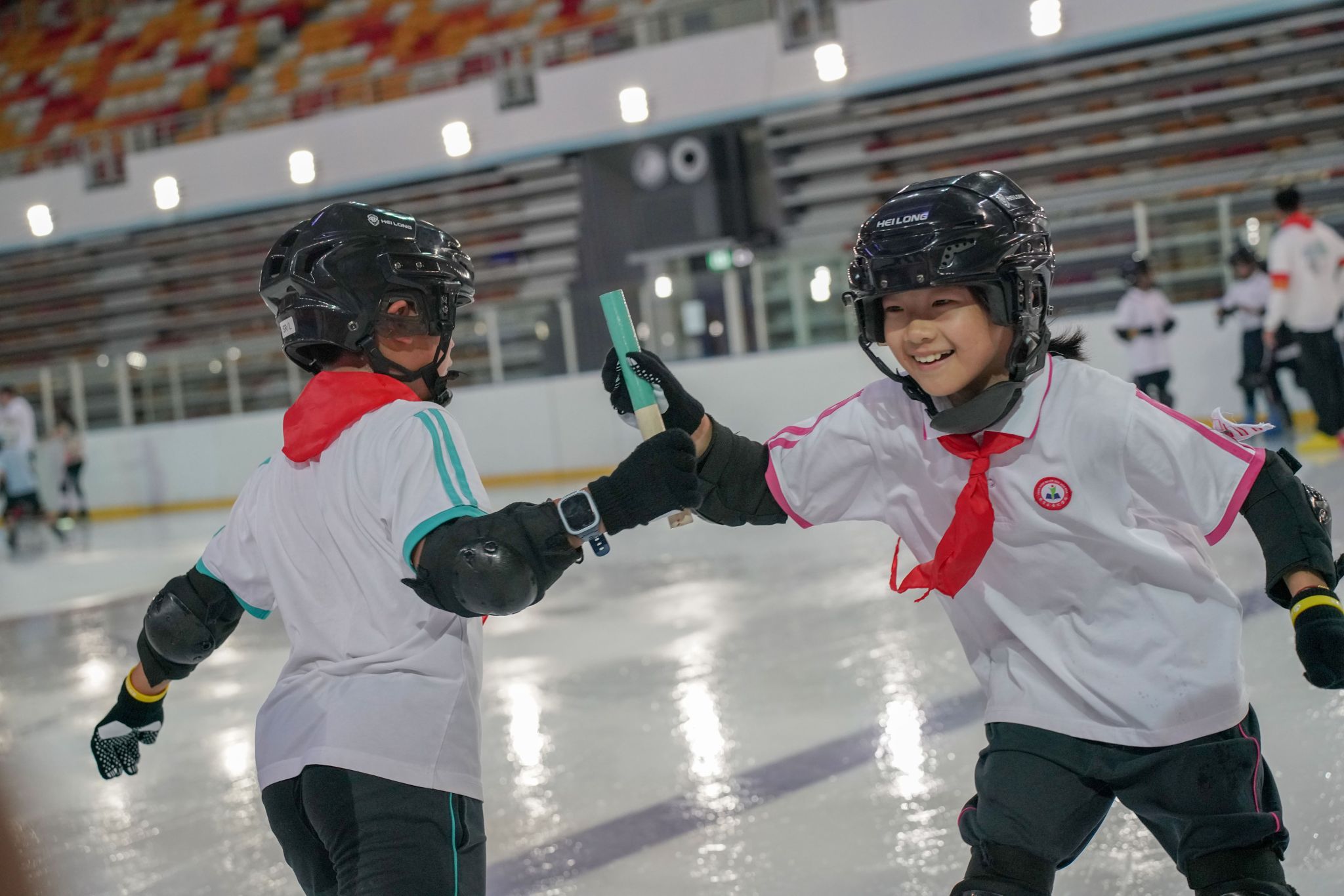 把知识教育和项目文化相融合正是这次体验营别出心裁之处。在体验营的火炬传递仪式环节,孩子们要先观看2008北京奥运会和2022北京冬奥会火炬传递仪式的视频介绍,了解火炬传递的意义,然后再在冰场上共同学习站立、滑行,最后推举一名火炬手来完成冰上火炬传递仪式。