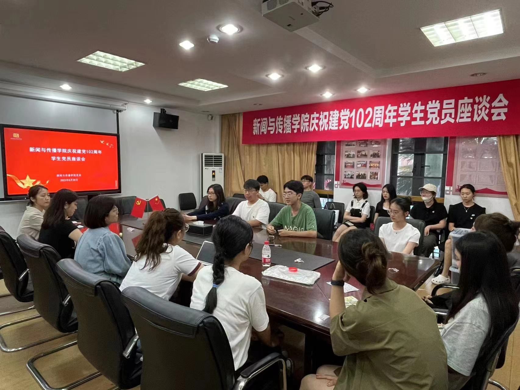 6月30日下午,新传学院党委举行学生党员主题交流座谈会。座谈会上,青年大学生积极发言,结合自己的个人经历和当下的社会热点,认真思考作为大学生党员,在新时代如何更好肩负起新青年的使命,接过历史接力棒。同学们分别从学习领会习近平总书记对青年人的嘱托、青春与理想信念的关系,如何提升专业技能素养、深入开展实习实践与探索中国故事的国际传播等角度阐发了自己对主题的深入思考。