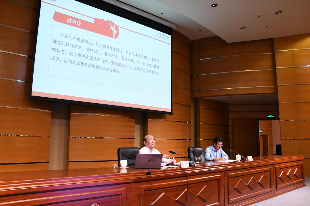 党课最后,崔勇勉励广大师生党员,守正心才能走得远,行正道才能走得稳,树正风才能走得好,勇于推进党的自我革命,管好自己,管好家人,管好队伍,以“永远吹冲锋号”的状态,纵深推进全面从严治党,共同营造积极向上、充满活力的干事创业环境,以伟大自我革命引领伟大社会革命。