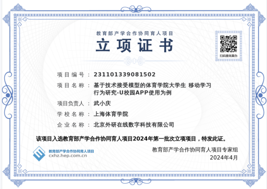 依托数智化资源和教学研平台,大学英语团队积极推动校企产学研合作。目前在进行的4项教育部产学合作协同育人项目《大学英语“学-训-评-研”一体化测试题库建设》、《基于itest平台的体育院校大学英语自主学习的实证研究》、《基于在线测评系统的体育英语竞训基地建设与应用》、《基于技术接受模型的体育学院大学生移动学习行为研究—U校园APP使用为例》,多措并举、全方位、多维度探讨数智技术作为新质生产力,如何赋能大学英语教学提质增效,勇创佳绩。