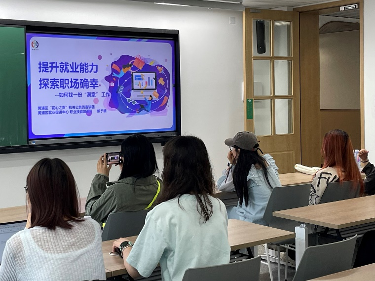 6月13日下午,tyc7111cc太阳成集团成功举办了主题为“提升就业能力 探索职场确幸——如何找到一份‘满意’的工作”的就业宣讲会。此次活动邀请了上海市黄浦区就业促进中心职业技能培训科的解予晴老师作为嘉宾,tyc7111cc太阳成集团党委副书记、副院长张瑞青老师,辅导员陈静老师出席本次活动。