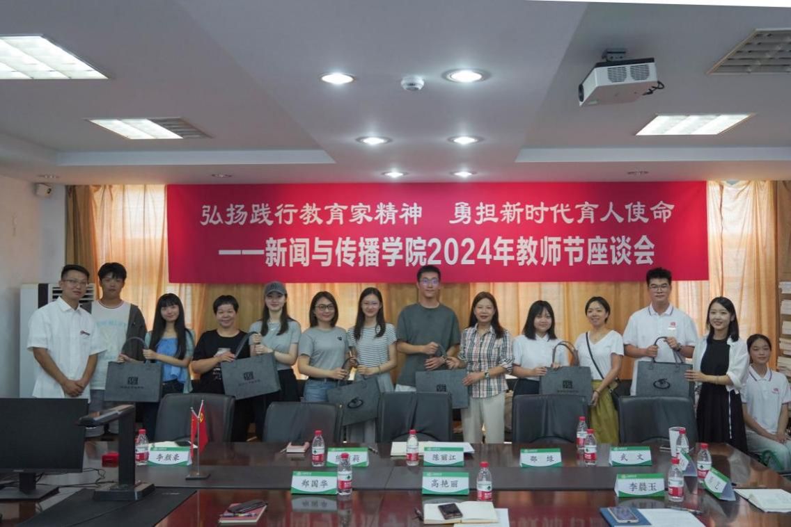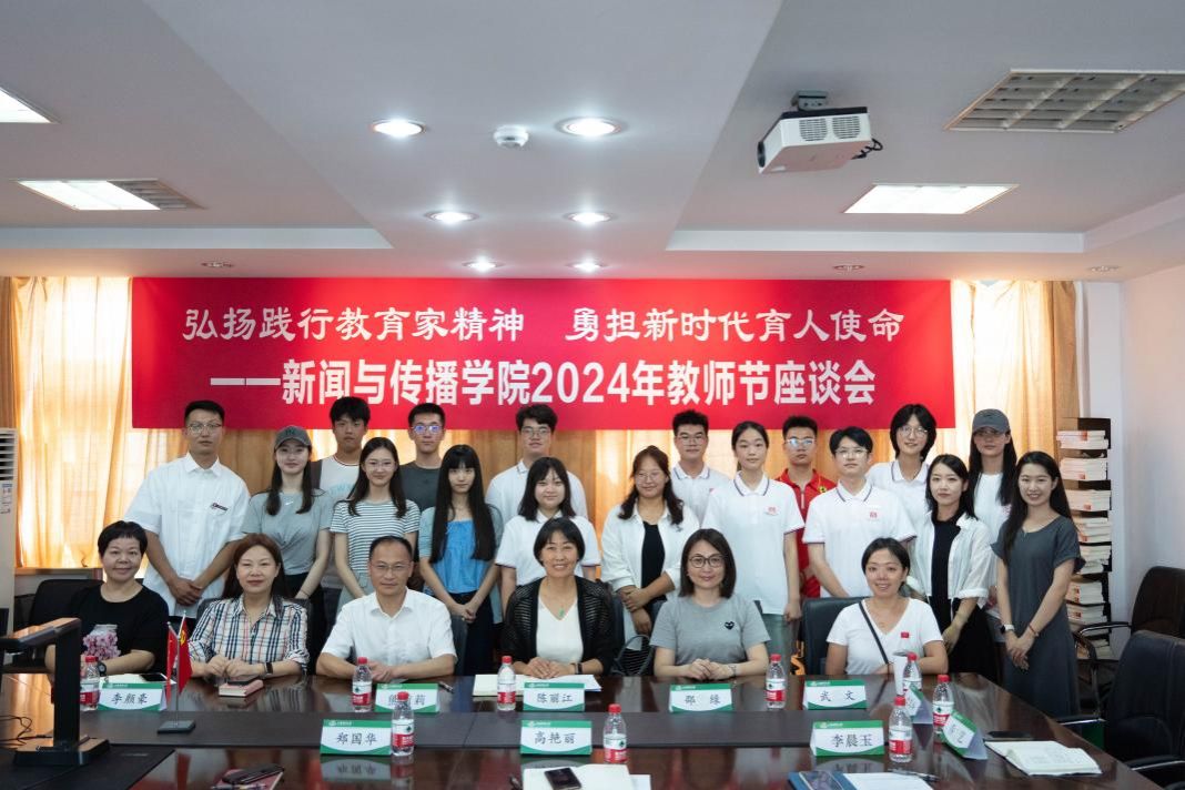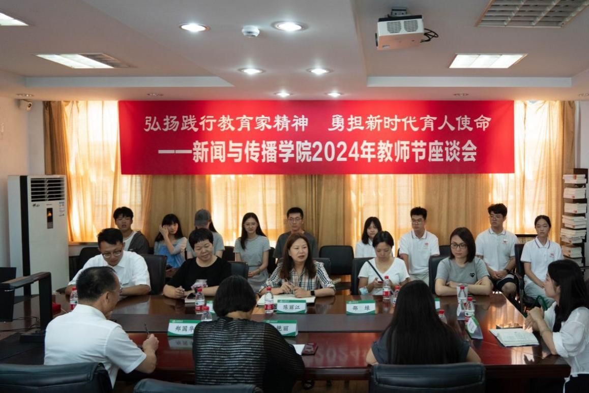 9月9日上午,在第40个教师节来临之际,tyc7111cc太阳成集团在学院中间会议室举行2024年教师节座谈会,深入学习贯彻党的二十届三中全会精神和习近平总书记关于教师队伍建设的重要指示精神。新传学院党委书记高艳丽、副院长(主持工作)郑国华以及学院新生班主任代表、辅导员代表以及学生代表参加会议。