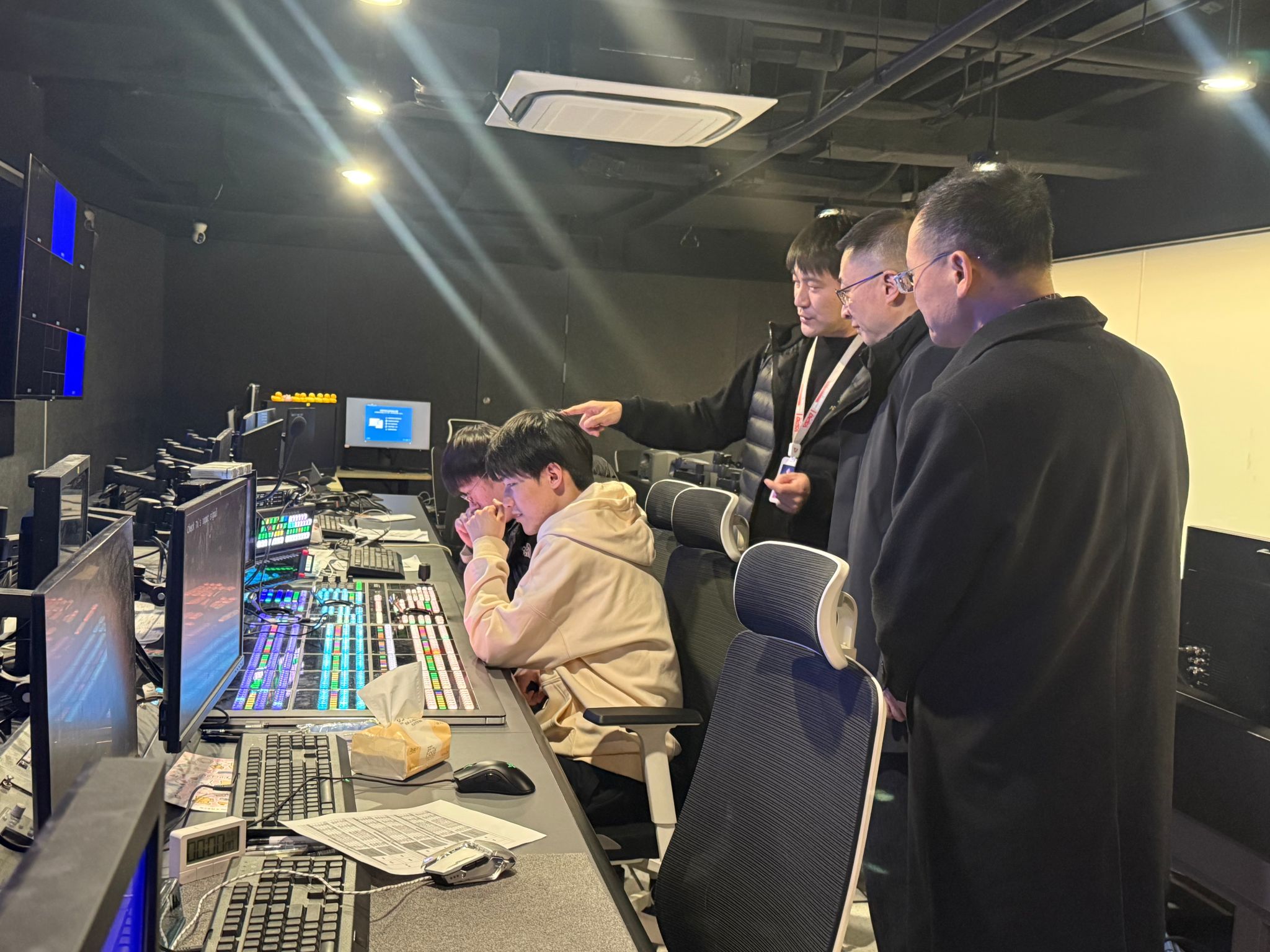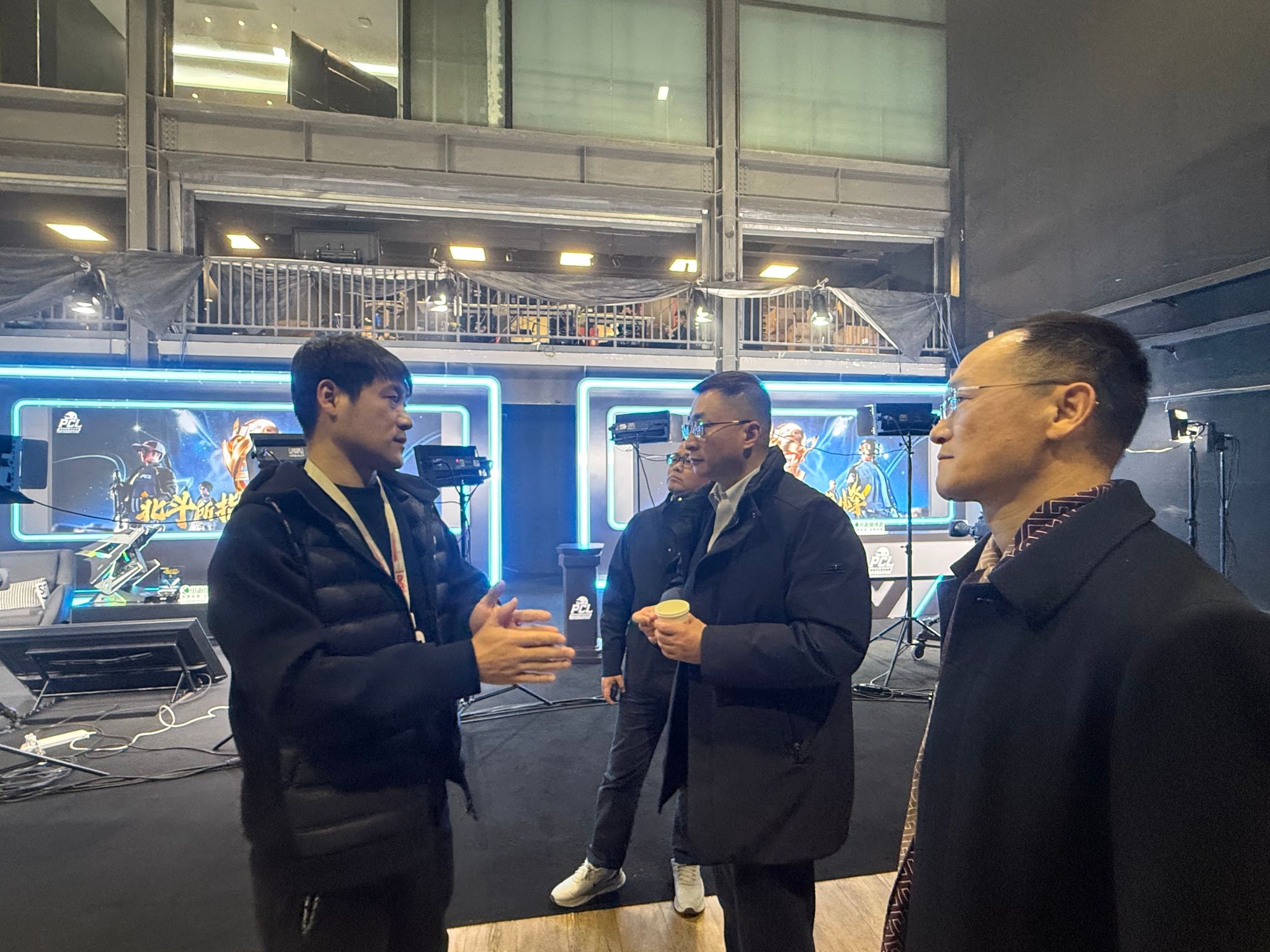 英雄电竞联合创始人兼COO、党支部书记郑夺接待了太阳官网来访团队,引导调研团队首先参观了企业1500㎡的智能制播中心,该中心配备4K/8K超高清转播系统及虚拟引擎实时渲染技术,可支持全球多赛区赛事同步制作。在2000㎡的智能化电竞场馆集群,校企双方就5G+AI虚拟直播技术应用展开深入交流。