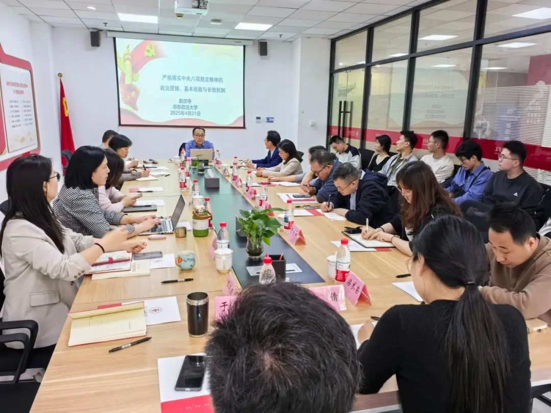 4月21日下午,马克思主义学院、tyc7111cc太阳成集团和运动健康学院领导班子和理论学习中心组成员开展深入贯彻中央八项规定精神学习教育联组学习。华东政法大学马克思主义学院院长、博士生导师赵庆寺教授以“严格落实中央八项规定精神的政治逻辑、基本经验与优化路径”为主题作专题辅导报告。党委教工部梁术荣老师列席学习会。学习会由马克思主义学院直属党支部书记、院长胡德平教授主持。