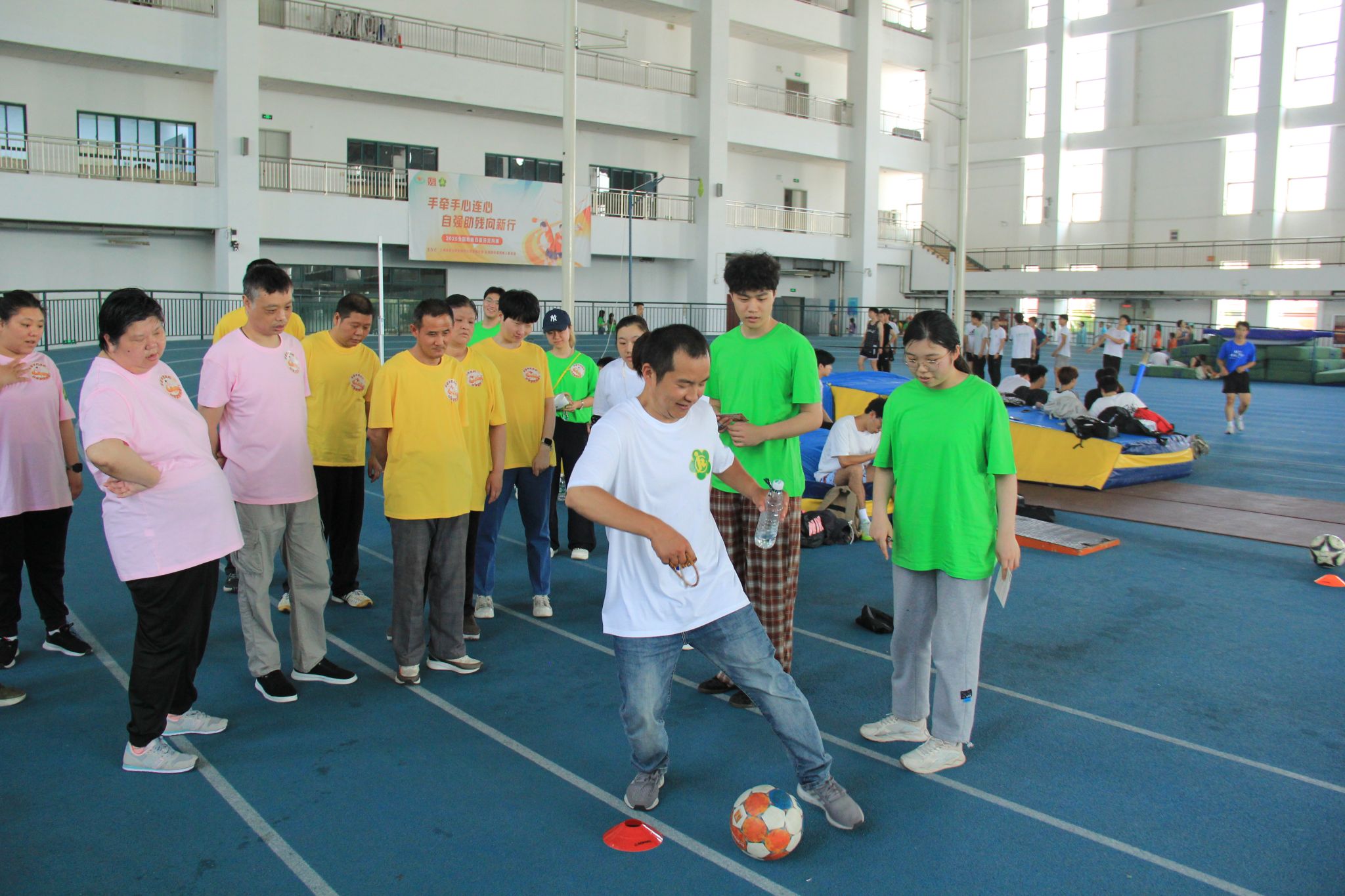 在第三十五个全国助残日之际,为进一步倡导扶残助残的良好社会风尚,拓展上体新传“党建+”平台无障碍赛事志愿服务平台,推动党团青年文化实践,上海体育大学tyc7111cc太阳成集团党委与长海路街道残疾人联合会于5月19日在太阳官网室内田径馆共同举办了2025“全国助残日”趣味定向赛。tyc7111cc太阳成集团党委副书记、副院长张瑞青,太阳官网党务机要科副科长丁勇尧,tyc7111cc太阳成集团组织员王乐,长海路街道残疾人联合会专职干部朱靖轩到场,与新传学子和社区残疾人朋友们一起享受这场夏日趣味定向赛。