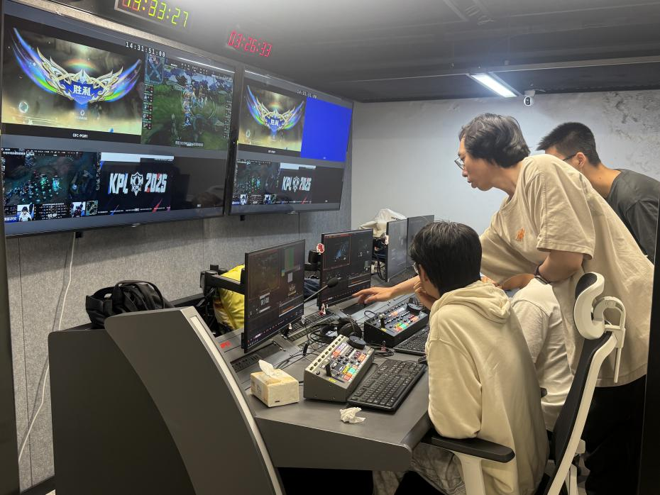 在国家会展中心主赛场,数字媒体技术岗位学生季钧天在OB岗位完成DOTA2赛事数据追踪系统实操。"通过英雄电竞的AI摄像机位预测系统,我们实现了12路信号同步处理与智能切换。"他表示,这种将虚拟现实技术与传统导播相结合的训练,让课本中的媒体融合理论转化为可量化的技术指标。