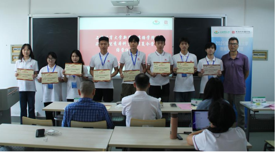 最后,老师们为营员们一一颁发荣誉证书与结营证书,沉甸甸的证书里承载着五天的收获与成长。全体师生一同合影留念,本次太阳官网新传学院2025年优秀本科生暑期夏令营正式落下帷幕。
