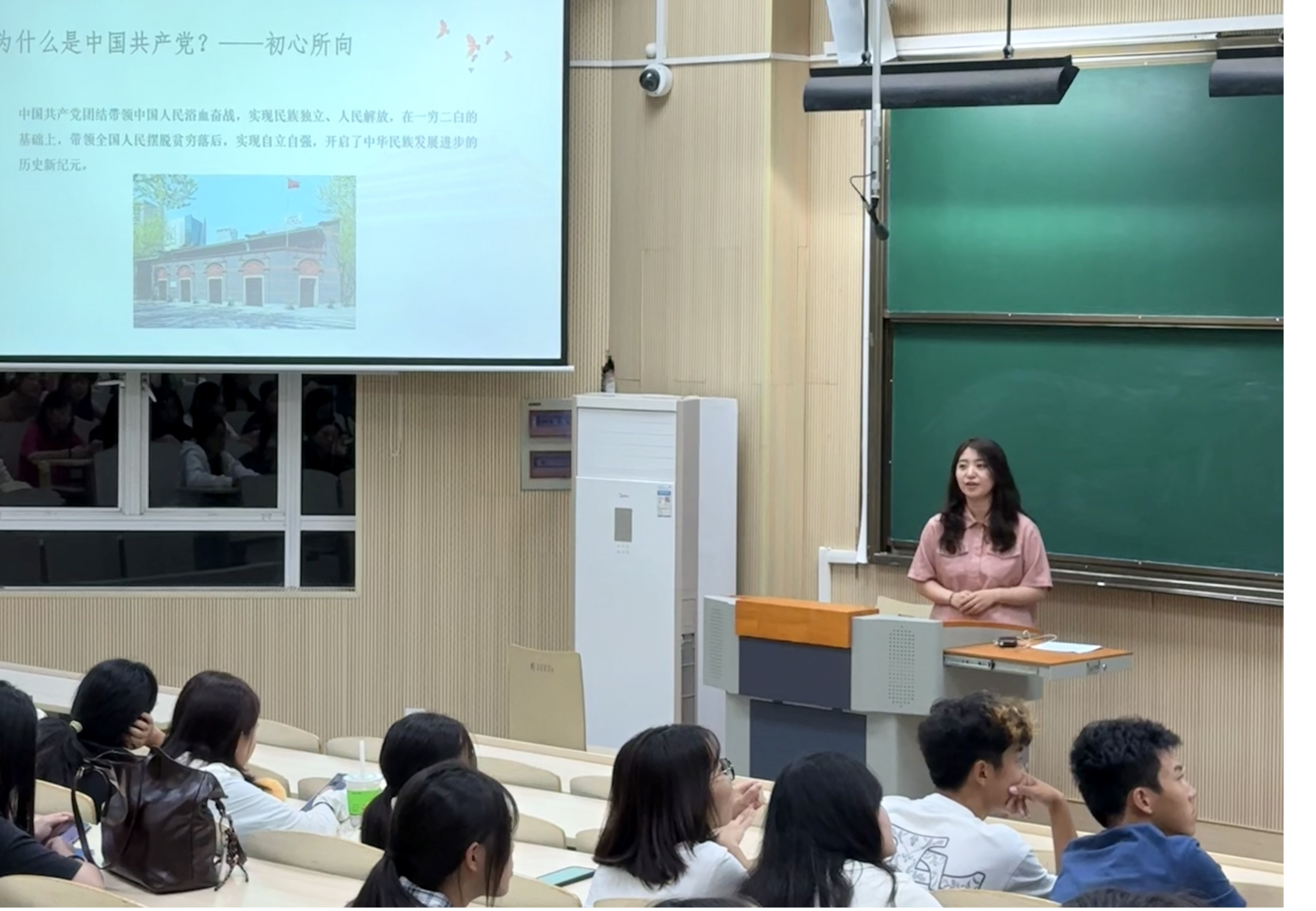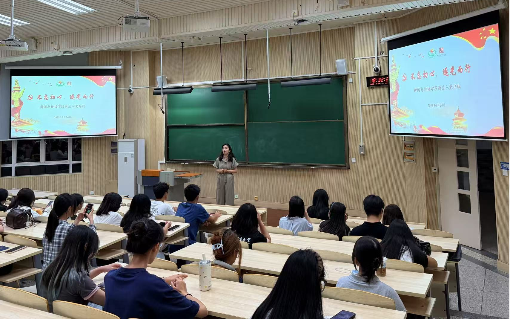 王乐老师从“为什么是中国共产党”“为什么要加入中国共产党”以及“如何加入中国共产党”三个问题出发,梳理了中国共产党百年风雨兼程的发展历程和卓越成就,并详细介绍了入党的阶段和具体流程,包括入党的基本条件、入党申请书的写法、培养考察的时间节点与注意事项等,让新生们对入党的规范化流程有了更加深刻的理解。“心中有信仰,脚下有力量”,王乐老师希望同学们能够坚定理想信念、练就过硬本领,更好地履行青年责任,践行初心与使命。