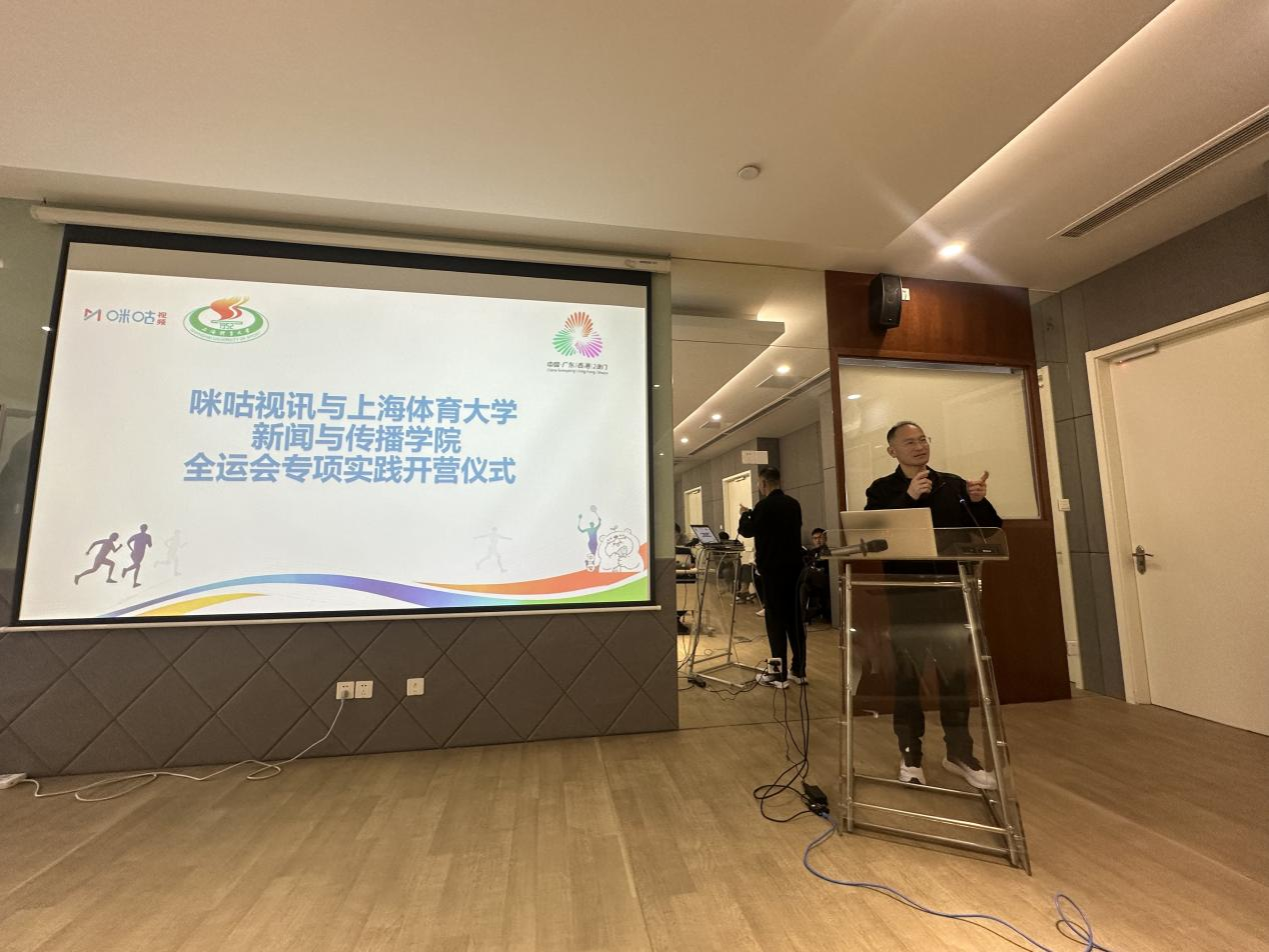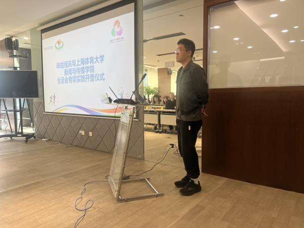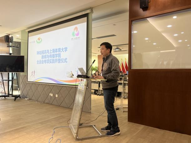 郑国华围绕校企协同育人核心主题,深入阐述了新时代学院人才培养的变革和愿景。他指出,学院育人的核心目标是培养适应行业变革、具备综合能力的复合型人才,而校企合作正是实现这一目标的关键路径。他以咪咕视讯的赛事运营实践为例,进一步说明行业变革对人才培养的新要求,鼓励同学们主动参与不同业务环节,在实践中提升主动学习能力与综合业务素养。“高校课堂传授的是基础理论,而企业一线能提供最鲜活的业务场景。希望同学们借助此次全运会实践,深入了解体育媒体的全链路运作,不仅掌握全运会报道的专业技能,更要建立对媒体行业的系统认知,快速成长为适应当下技术变革的复合型新闻传播人才。”