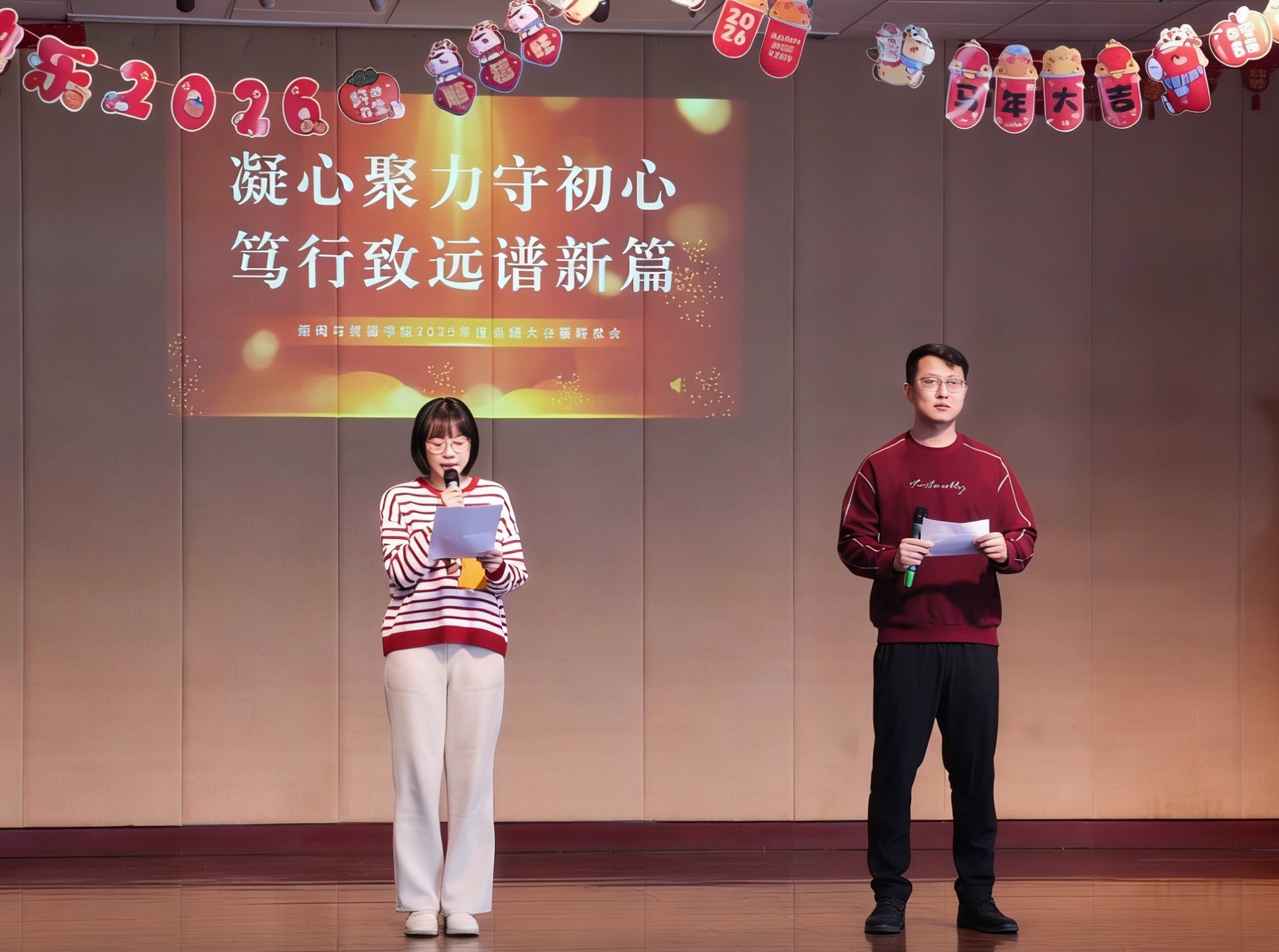 灯光璀璨,暖意融融,当岁月的指针划过2025年的终点,tyc7111cc太阳成集团以一场充满温情与荣光的总结大会暨联欢会,为这一年的耕耘画上圆满句号。1月7日下午,tyc7111cc太阳成集团党政班子与全院教师欢聚一堂,共忆奋斗时光,共话未来期许,在表彰先进、趣味互动中,凝聚起新一年砥砺前行的磅礴力量。联欢会由青年教师史又今、李颜豪主持。