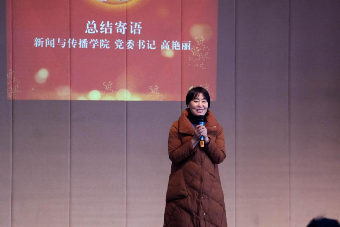 高艳丽在活动最后进行总结,她向学院全体教职工一年来的辛勤付出表示衷心感谢,向获奖教师表示热烈祝贺,并勉励大家在新的一年里,继续秉持“凝心聚力、笃行致远”的精神,以更加饱满的热情、更加务实的作风,在教学科研、人才培养的道路上勇攀高峰,共同书写新传学院更加辉煌的篇章。