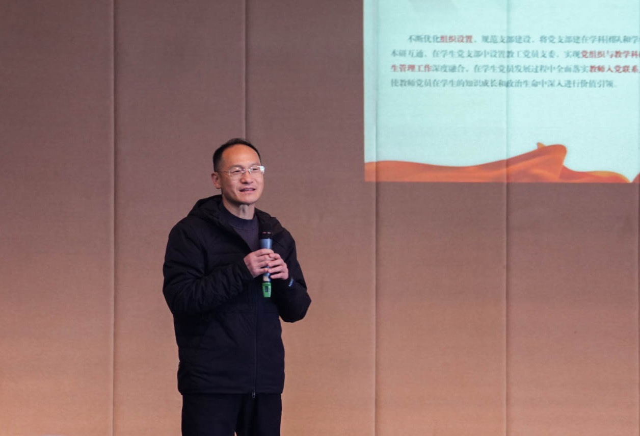 获奖教师代表熊欢上台发言,分享了科研路上的坚守与感悟,表达了对教育事业的热爱与对学院发展的美好期许,引发全场共鸣。