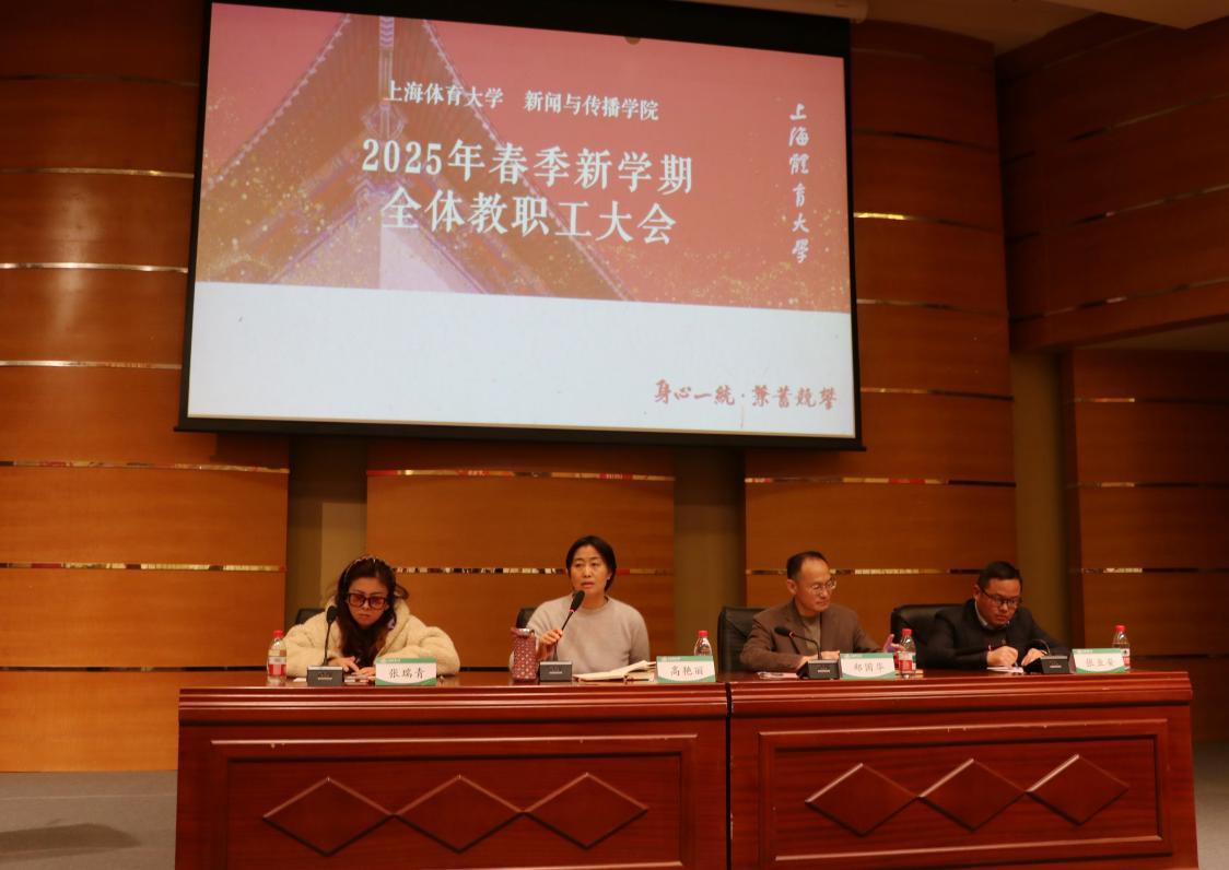 高艳丽向全体教职工传达了学校干部大会精神,重点解读了落实高等教育“重服务,强贡献”计划、落实立德树人根本任务、人才强校战略实施及党的建设等重点内容。她强调,新学期学院将持续深化AI赋能,对标国际体育大学相关专业建设,深耕体育传播专业特色建设;强化实践教学,深化校企合作机制,充实行业师资队伍,提升人才培养质量。她指出,学院的稳步前行凝聚着每一位老师的智慧与汗水,取得的每一项成就都闪耀着集体的荣光。希望全体老师继续保持昂扬向上的精神状态,将个人的发展融入到学院大局中,以实干笃定前行,用汗水浇灌收获,在教学科研上精益求精,在立德树人中履职尽责,在团结协作里凝心聚力,共同书写学院发展的新篇章。