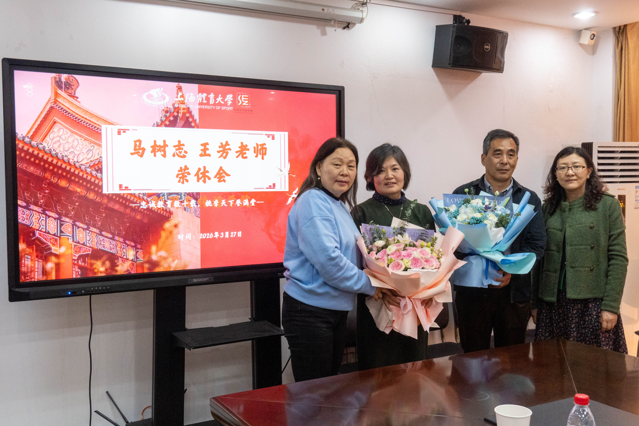 仪式现场,郑国华为马树志、王芳两位老师颁发荣休证书,张瑞青、张业安向两位老师赠送学院礼物,大学英语团队为两位老师送上了精心准备的从教回忆视频以及鲜花。学院以此次荣休仪式为契机,深入开展师德师风教育,引导全体教师传承优良师风、坚守育人初心。
