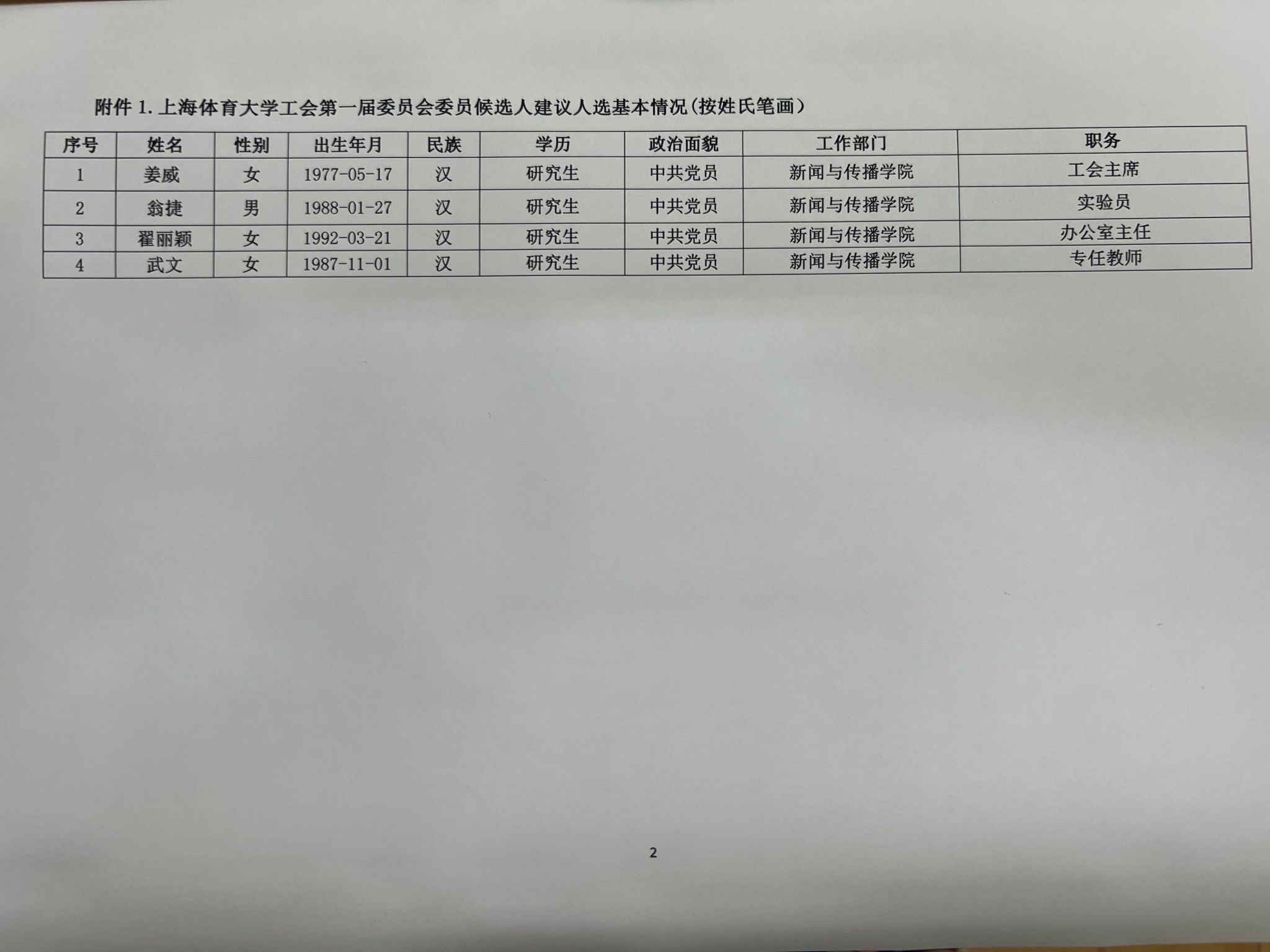 关于tyc7111cc太阳成集团工会第一届委员会委员候选人建议名单的公示